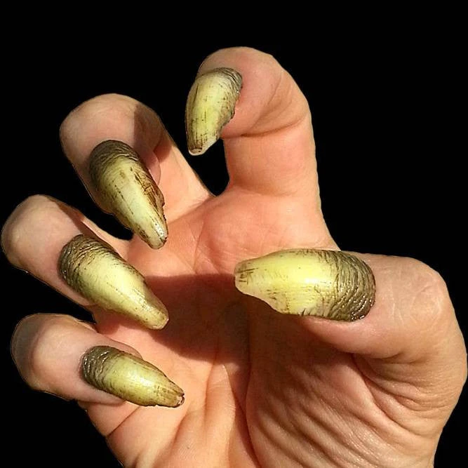 Orlock Creepy Claws by Dental Distortions are film quality costume FX appliances that stick to your fingernails with special cosmetic tape and can hold for hours. Â Each set is hand made and painted in the US for unrivaled detail in the costume and Halloween industry.