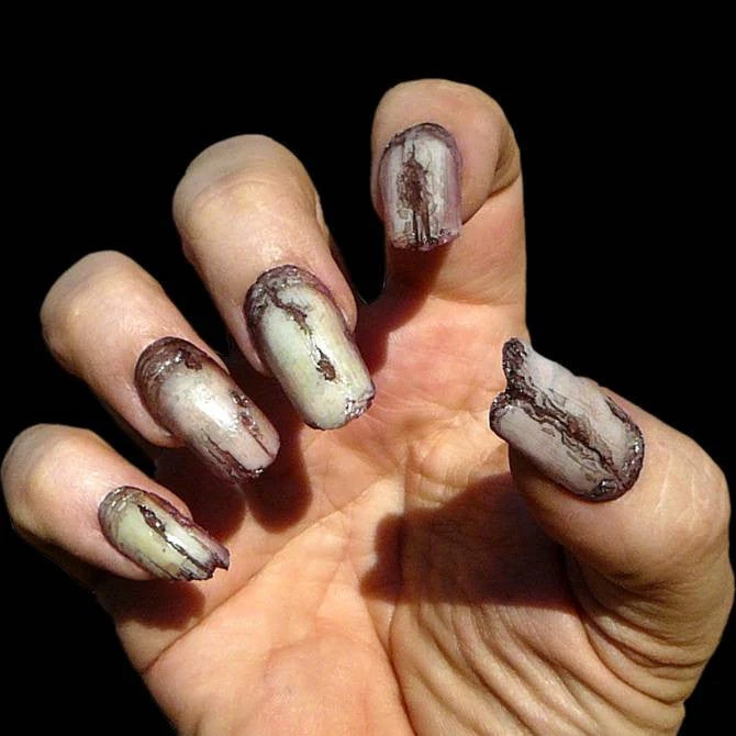 Undead Creepy Claws by Dental Distortions are film quality costume FX appliances that stick to your fingernails with special cosmetic tape and can hold for hours. Â Each set is hand made and painted in the US for unrivaled detail in the costume and Halloween industry.