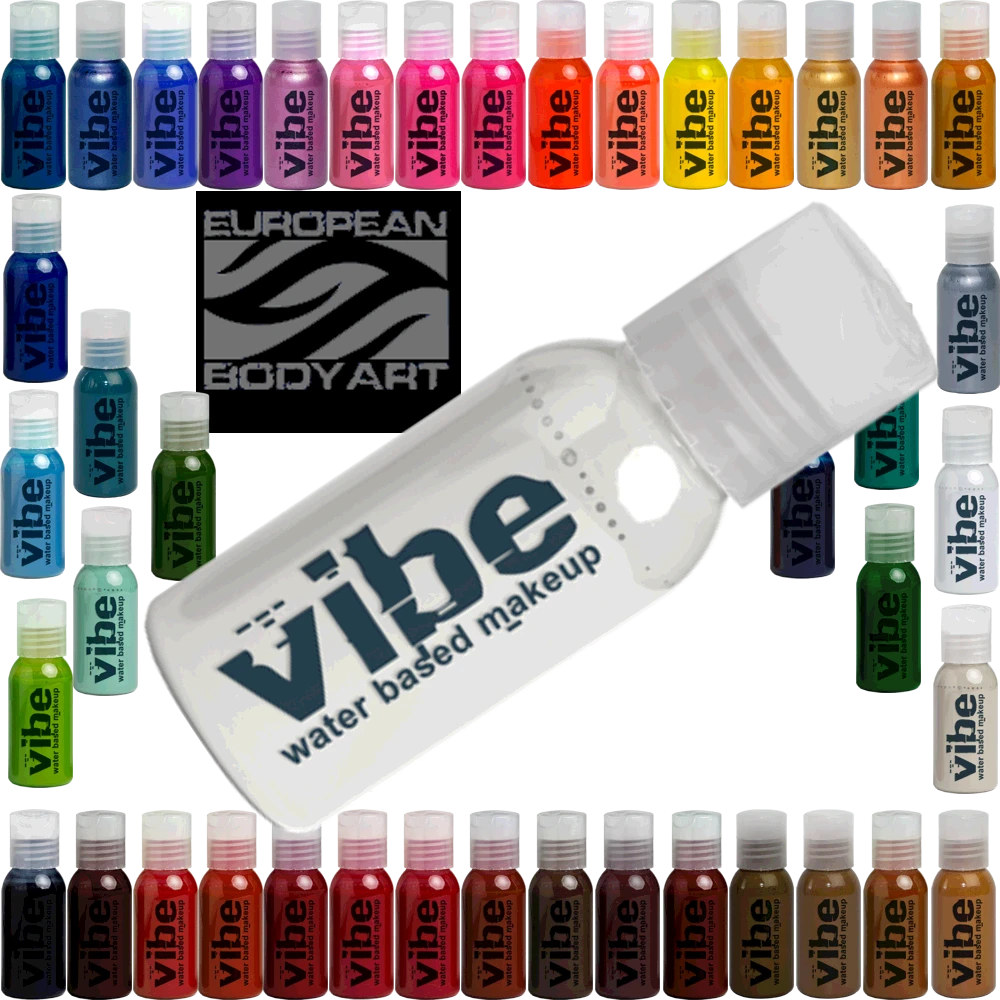 Use in an airbrush or paint on. European Body Art’s formerly named Vibe, now VODA is the safest and most demanded water based makeup for face, body painting and body art applications. It provides a superior alternative to standard hybrid paints as it is a completely alcohol and solvent free makeup with water, moisture and sweat resistant attributes. Yet, Vibe removes easily by rubbing with soap and warm water.