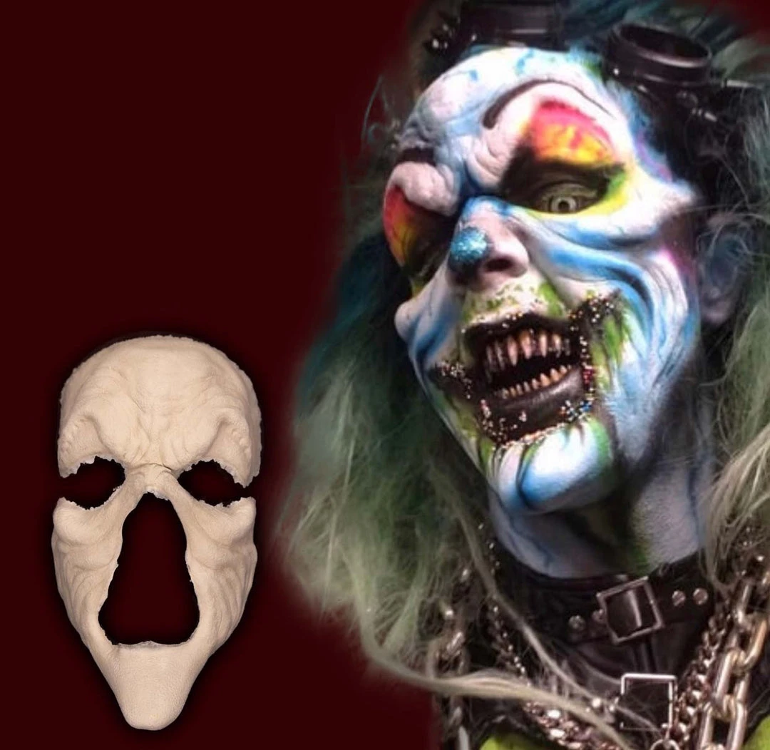 Professionally designed by makeup artists to be adhered to your face just like Hollywood movie makeup, this prosthetic is made of foam latex . Once applied this piece moves with your every expression. Unlike traditional pull over masks this appliance can be worn for hours in relative comfort.