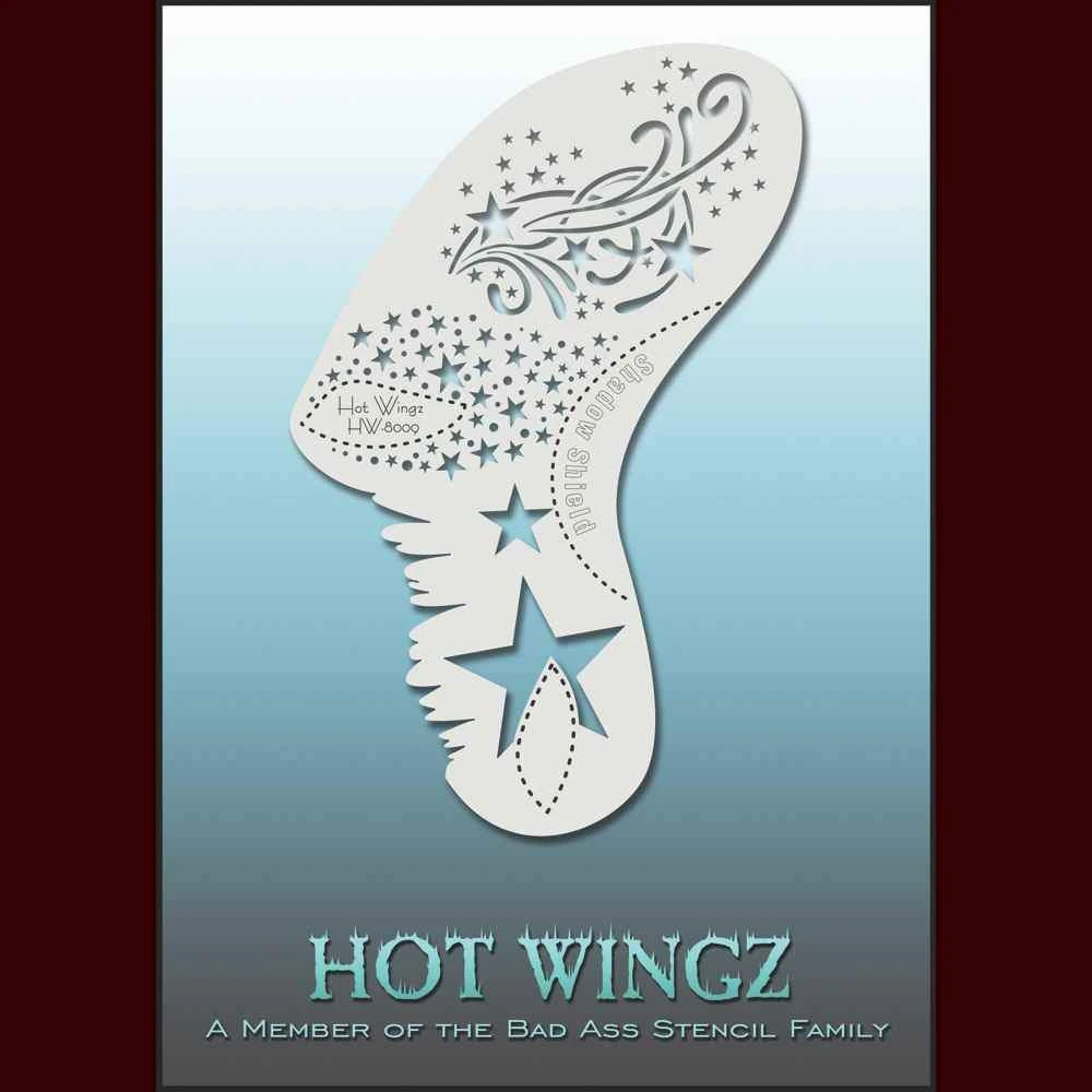 This design includes a Wing Ding, which can be used alone to shield the eye or under eye. Layer it on top of the Hot Wingz to block out areas of the stencil where you do not intend to apply product.