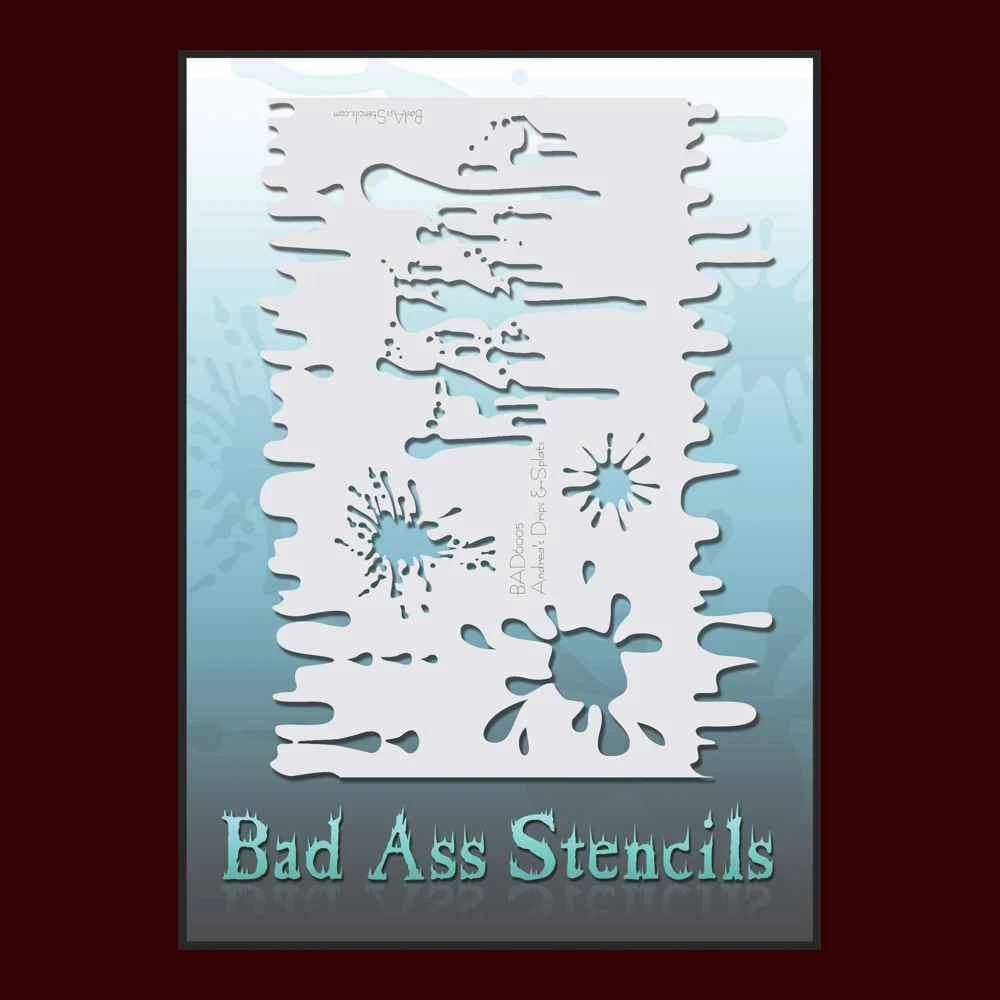 This stencil sheet measures aproximately 8.5″ x 11″. A variety of drips and splats, use this stencil for airbrush, face painting, body painting and character detail.