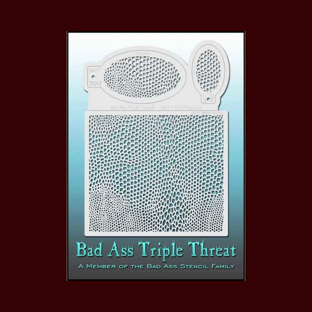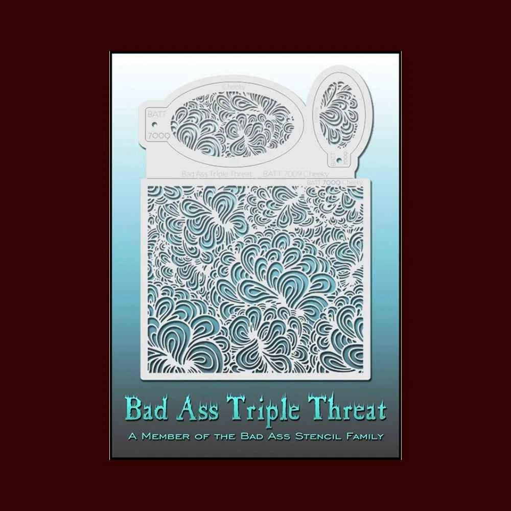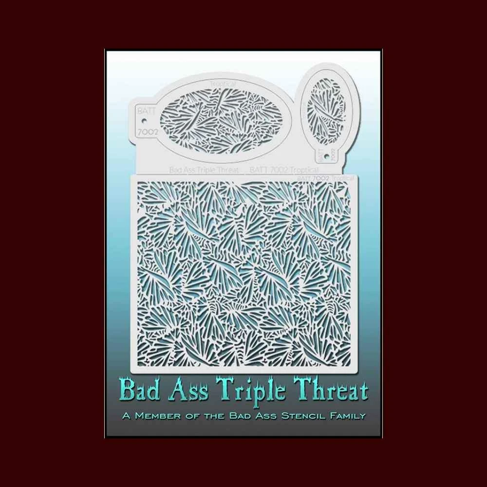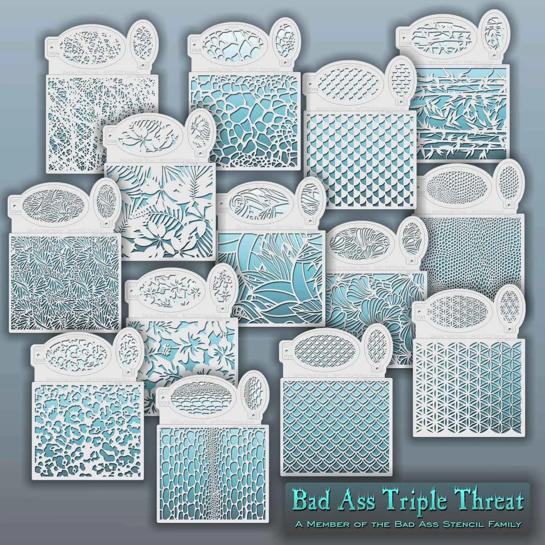 These Bad Ass Triple Threatâ„¢ Stencils come in 23 different styles and measure 8.5″ x 11″. Each texture is created in three different sizes for maximum versatility whether you are painting on the face, body, arms, or legs.