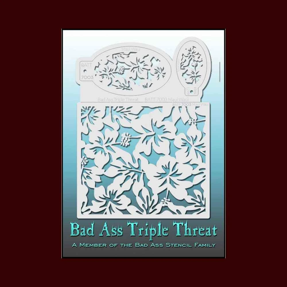Plumaria flower texture stencil set. Triple Threatâ„¢ Stencils measure 8.5″ x 11″. Each texture is created in three different sizes for maximum versatility whether you are painting on the face, body, arms, or legs.