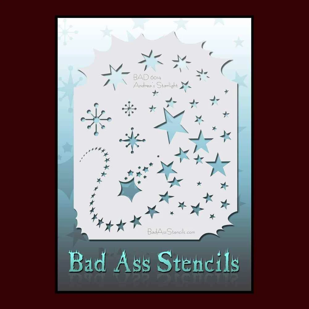 This stencil sheet measures aproximately 8.5″ x 11″. Stars, stars and more stars, use this stencil for airbrush, face painting, body painting and character detail.