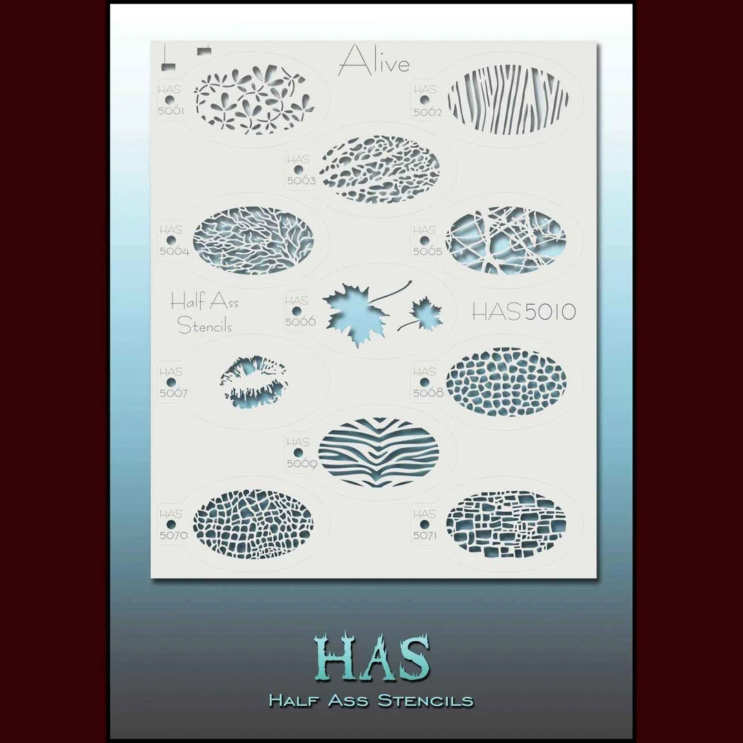 11 living texture stencils with each sheet. Each stencil measures 3.3 inches by 2 inches. Low price for a versatile set.