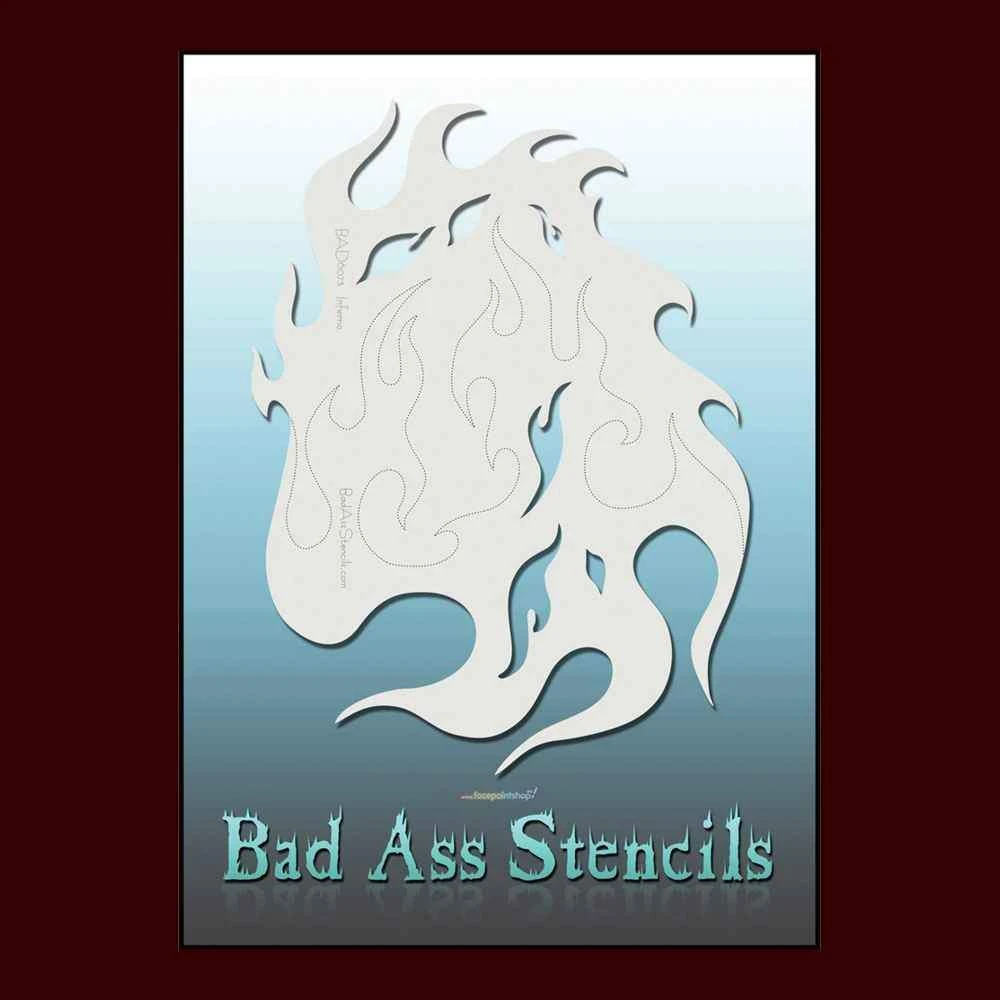 This stencil sheet measures aproximately 8.5″ x 11″. This stencil offers a bunch of big flame designs. Use this stencil for airbrush, face painting, body painting and character detail.