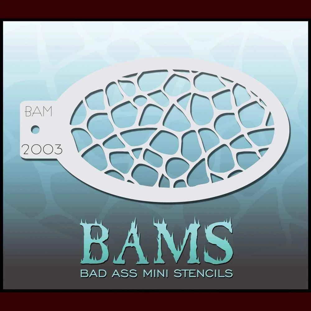 Tortoise shell, cobweb, uneven scale texture mini stencil measuring 3.5 in x 5 in. Compact for portability and designed by award-winning makeup artist and body painter, Andrea O’Donnell for a professional look.