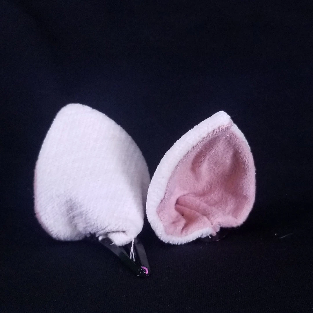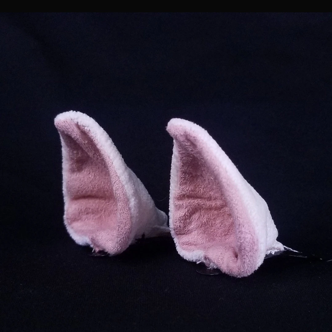 These clip-on Pig ears have the popular teardrop shape, and are sized between the regular and the minis. At 1.5″ w x 2″ h these ears attach easily to hair or wig with pre-attached snap clips, and are very stable. Soft, smooth pink and white fabric show off the curves of these perky ears to bring out the swine in your costume. Handmade in the USA.