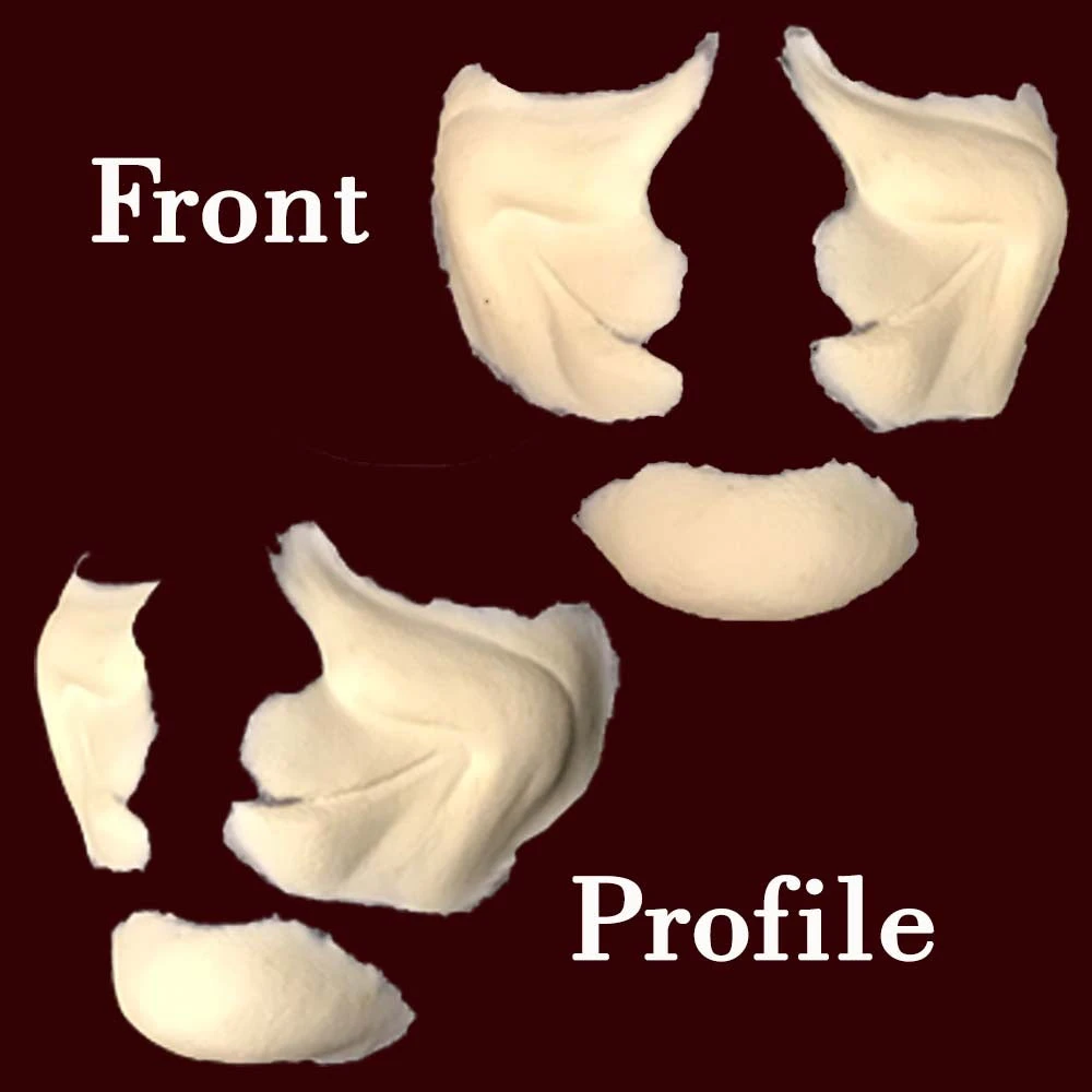 This Joker prosthetic set includes two cheeks and a chin. This set of appliances extends your smile and chin without much intrusion on your mouth allowing for those huge, hysterical, sinister laughs to reach unencombered realism.