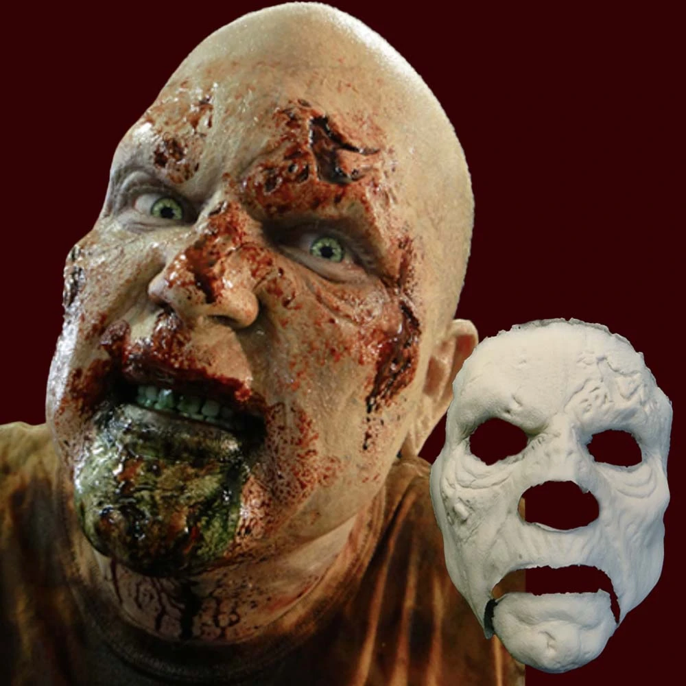 Foam latex prosthetic masks adhere directly to your face and move with your expressions.