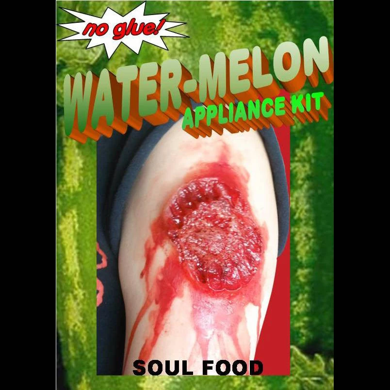 This is a Non-latex injury appliance. This bite wound appliance can be used for a zombie bite, animal bite or just a love bite from your favorite Rougarou. Water-Melon material is lightweight and easy to apply without any adhesive or backing. It simply adheres to your skin with isopropyl alcohol.Â