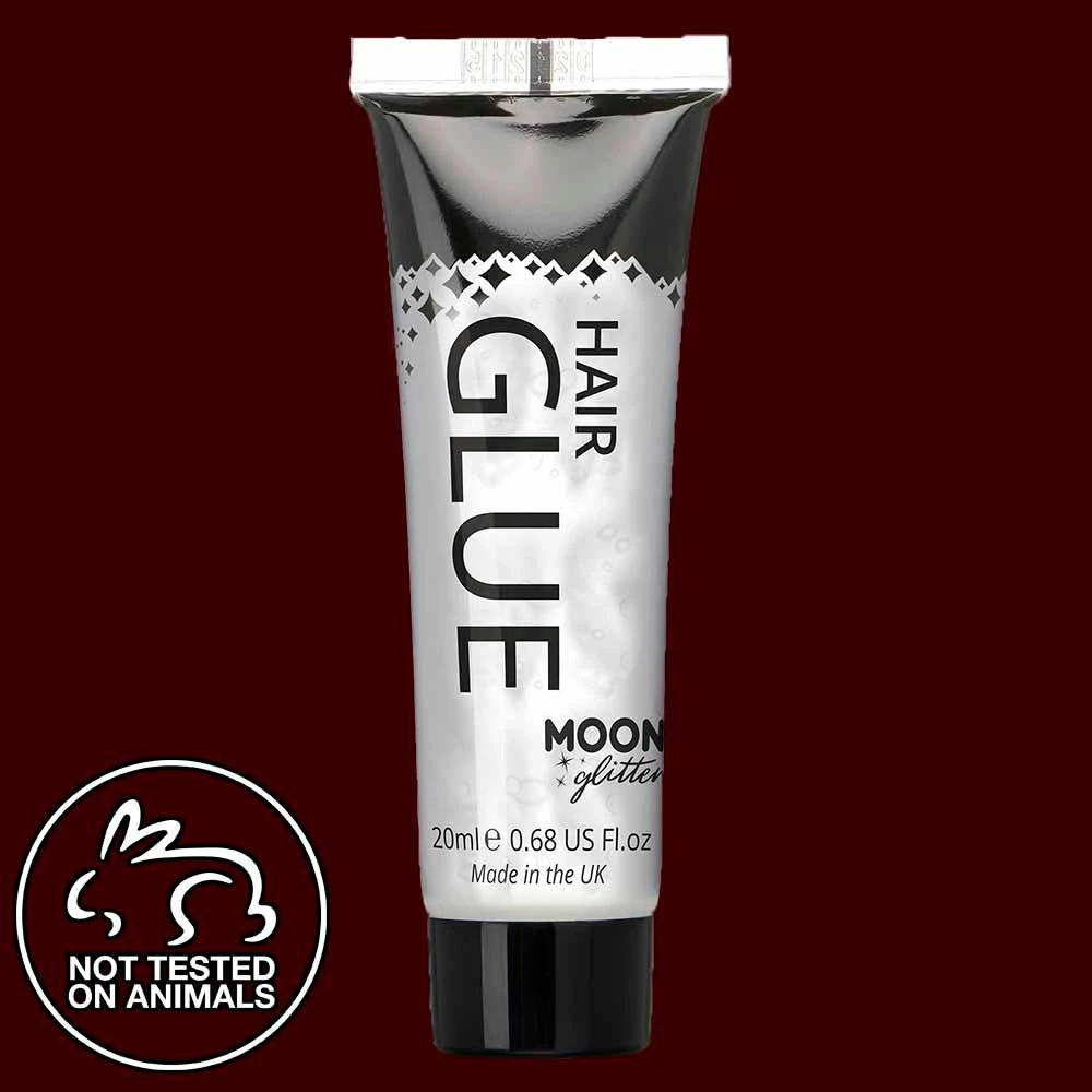 Use Moon Glow glitter Hair Glue to affix all types of glitter (fine, chunky etc) to hair. We offer this fixative separately from the glitter giving you control over how dense or sparse your glitter makeup should be. This kind of versatility can’t be achieved with premixed glitter makeup.