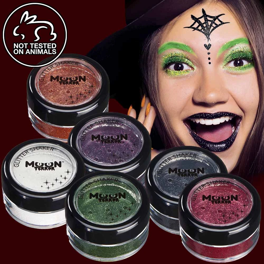 Available in 6 classic Halloween color variations. Fixing medium required for application is sold separately so you can custom mix your glitter makeup to achieve the perfect look.