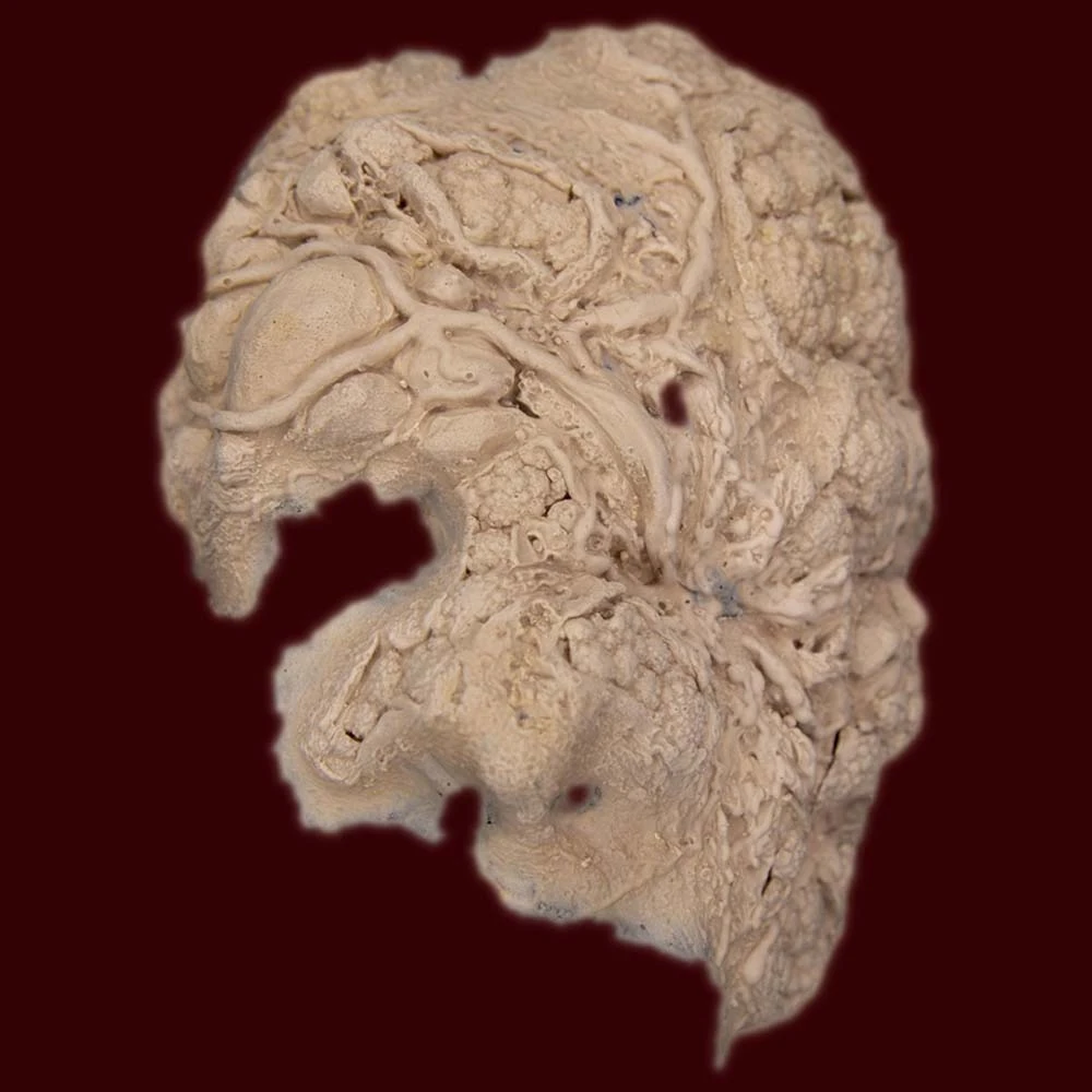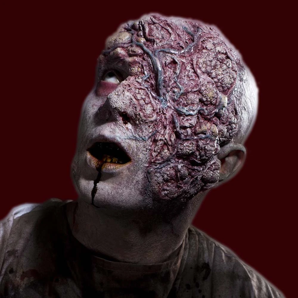 This foam latex mask is covered in pustules and inflamed veins. Great for infested zombies or irradiated mutants.