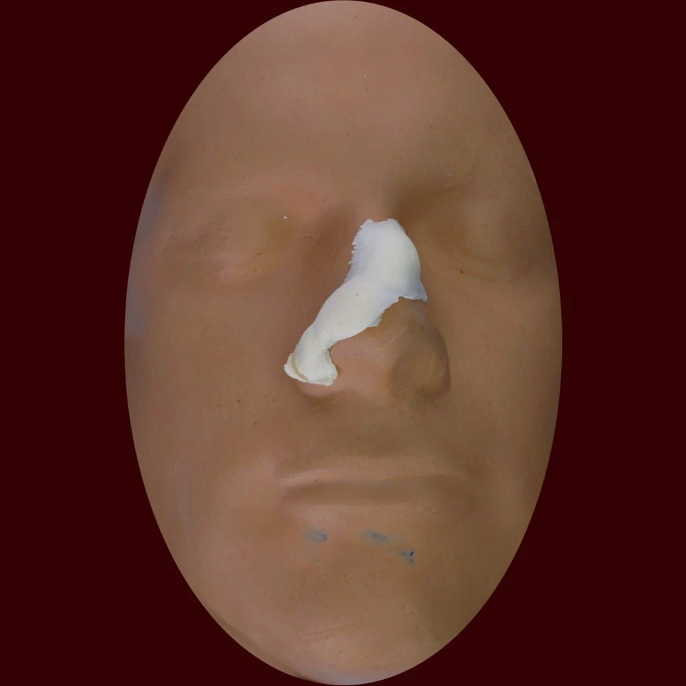 Foam latex injury appliance for stage, film or Halloween. This realistic broken nose FX prosthetic isn’t just for Halloween costumes.Â