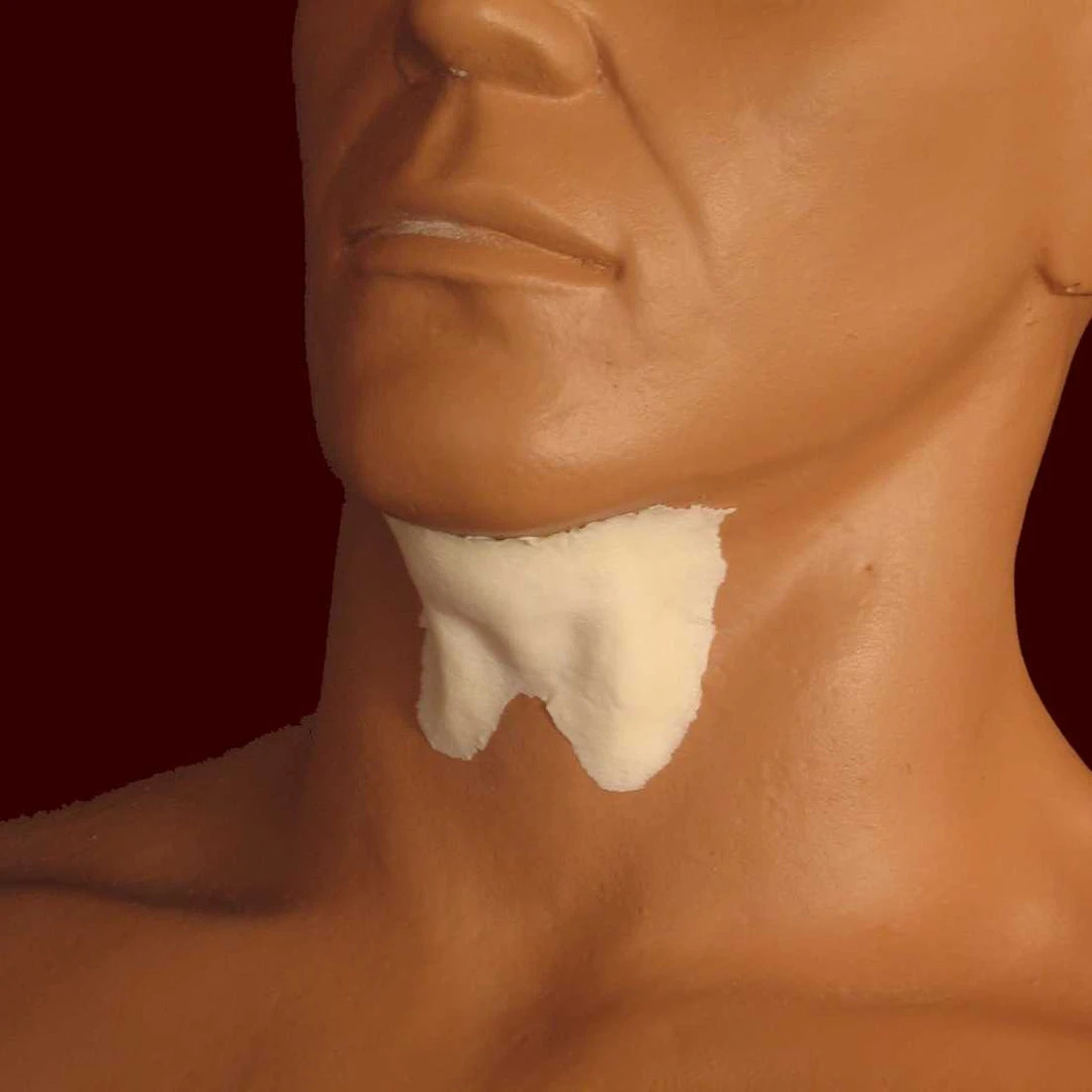 Add a double neck wattle to your old age makeup. This appliance will add a convincing detail to your aging character.