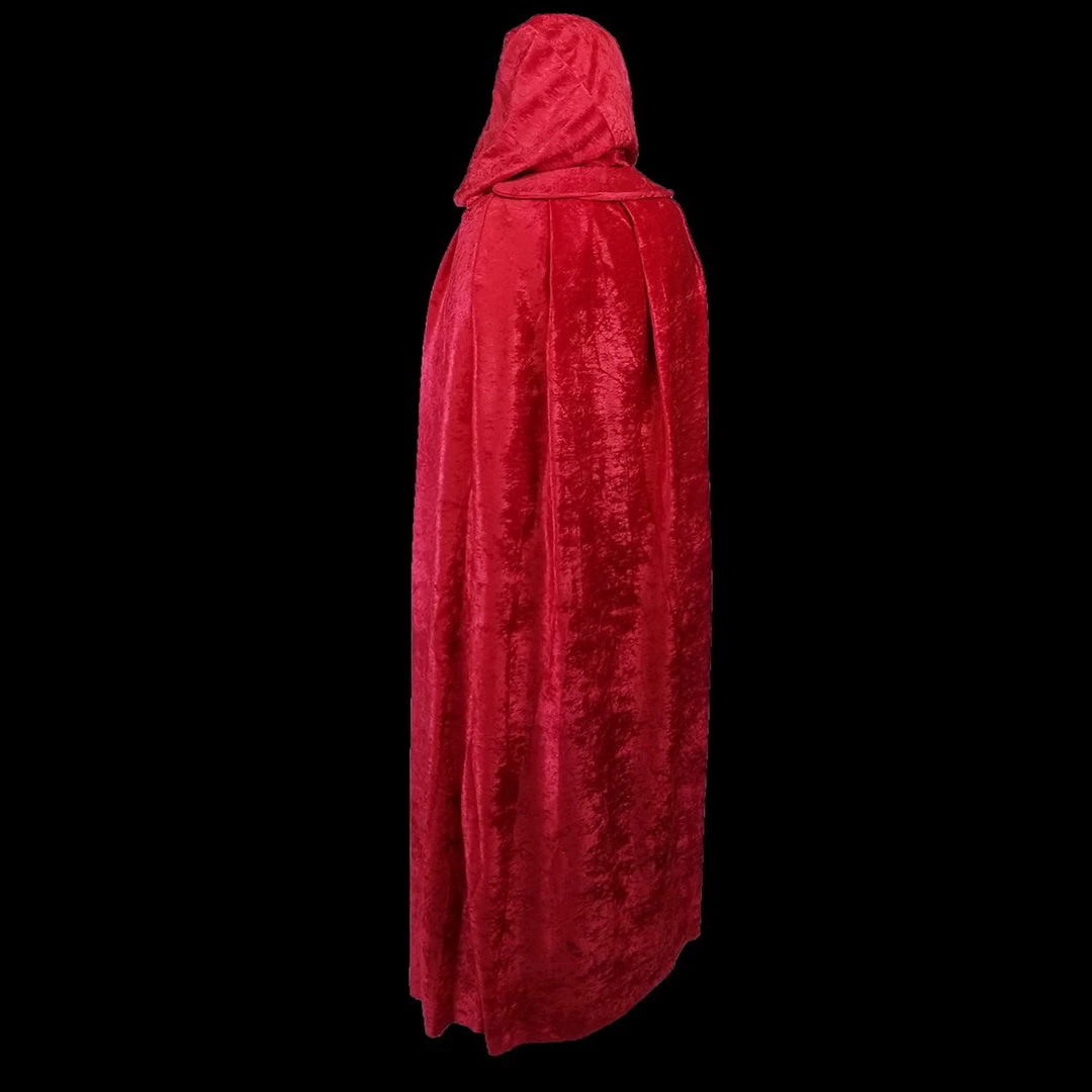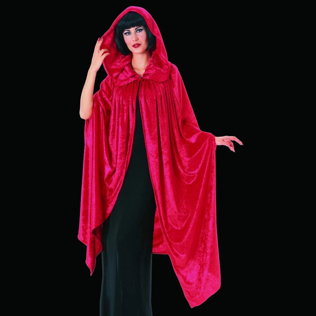 63″ Crushed Velvet Hooded Cloak perfect for Lil’ Red, Devil or Werewolf costumes. Unisex design. Ties in front. No arm holes.Â