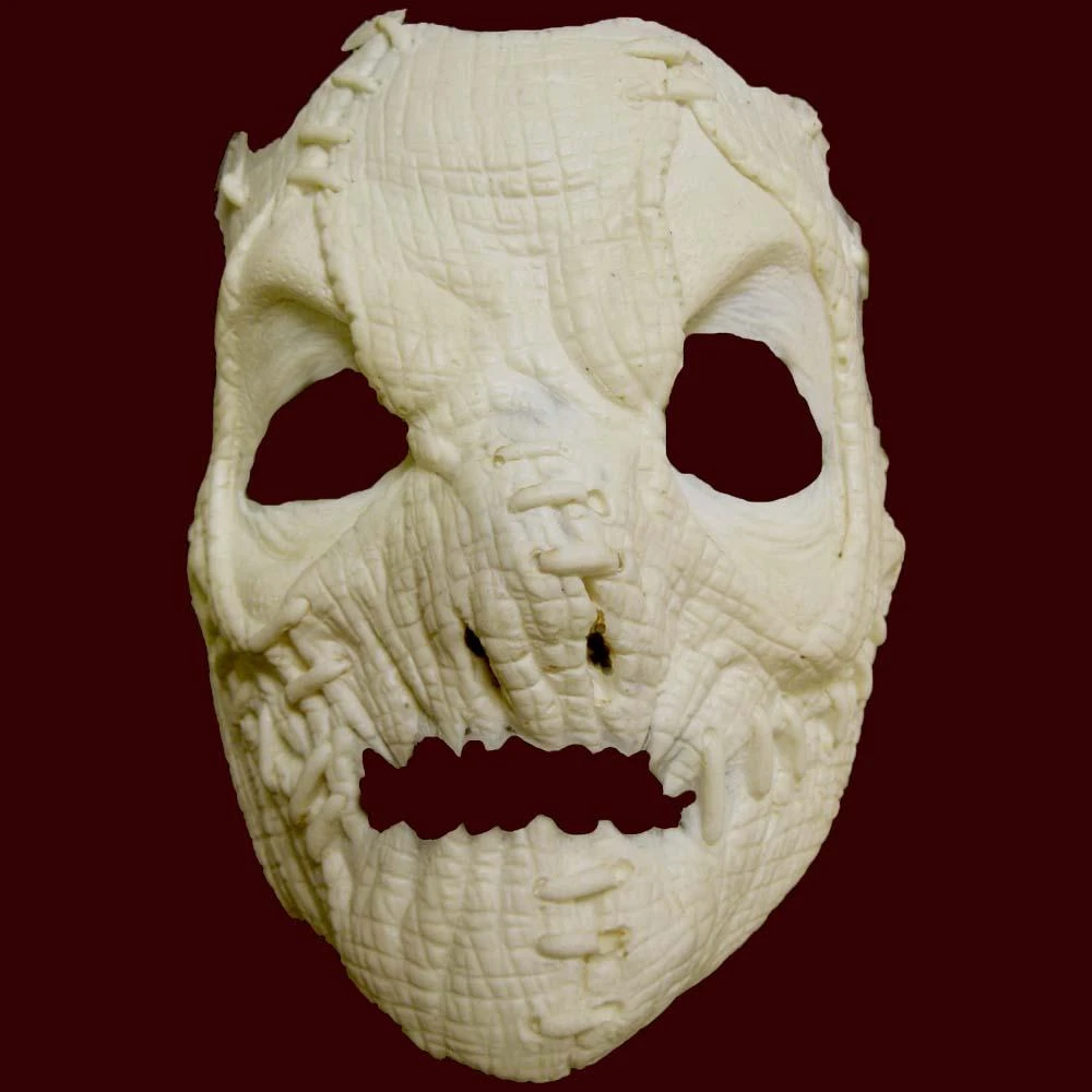 I don’t think we are in Kansas anymore! This is one scary Halloween scarecrow mask. It features a stitched, torn burlap pattern with patches showing a sinister face underneath. I think this scarecrow would rather eat Toto than escort Dorothy down the yellow brick road.
