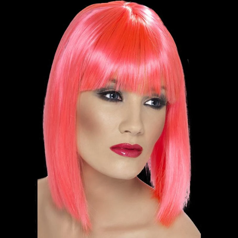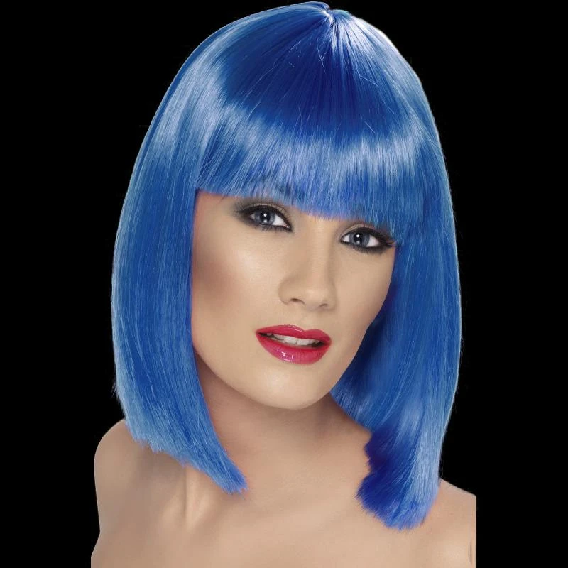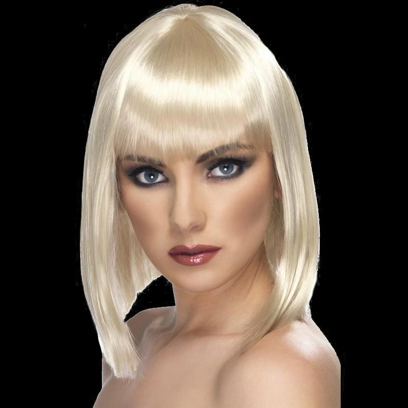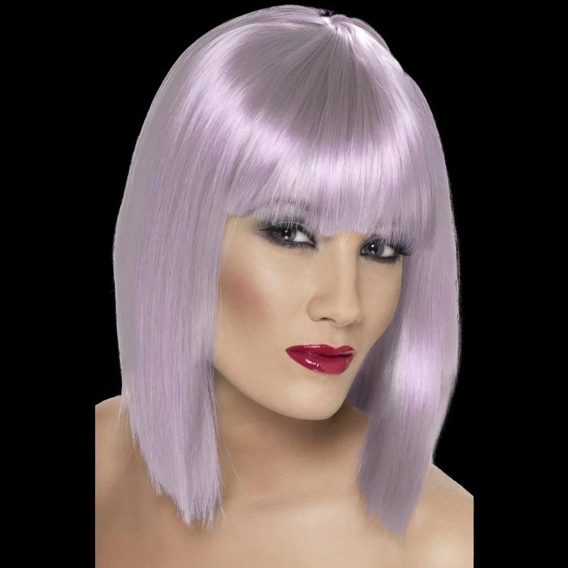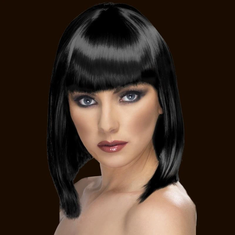 This elegant bob-style wig with bangs is great for many looks and costumes. It comes in multiple colors so you can choose just the right look. This wig is costume quality. Hand wash and air dry only.