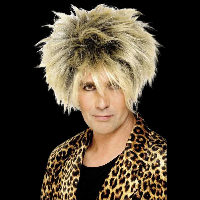Blonde spiky rocker wig. This wig is costume quality. Hand wash and air dry only.