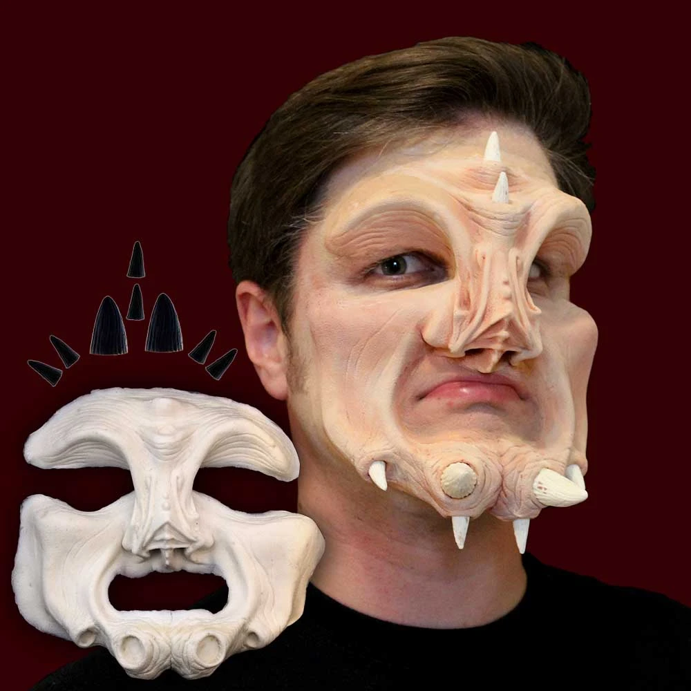 Soft foam latex pieces “glue” directly to your skin with cosmetic grade adhesive that is sold separately. Use makeup to blend the color to your skin and the mask comes alive. It moves with your face as if you have become your character. This type of special effects makeup has been used for decades in TV and film to create your favoriate sci-fi and fantasy characters. This is no ordinary Halloween mask, it is movie magic available to you for your next costume appearance on or off stage.