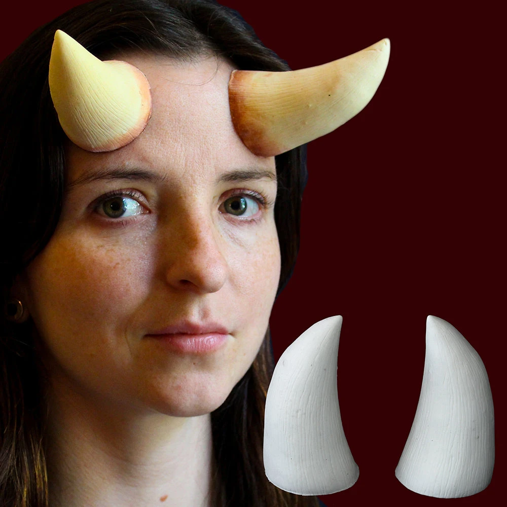 Large, long pointed costume horns made of solid foam latex. These are very versatile horns that make a big impression. Use for a demon, devil, minotaur or any other costume that requires large pointy horns.