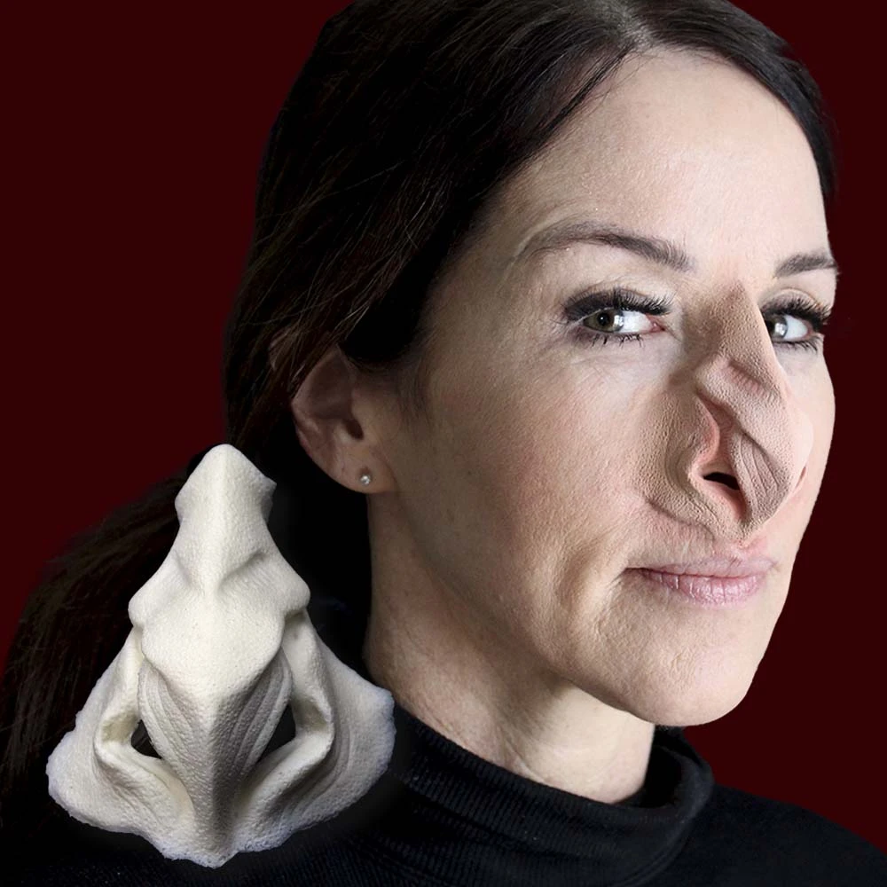Professionally designed by makeup artists to be adhered to your face just like Hollywood movie makeup, this prosthetic is made of foam latex . Once applied this piece moves with your every expression. Unlike traditional pull over masks this appliance can be worn for hours in relative comfort.