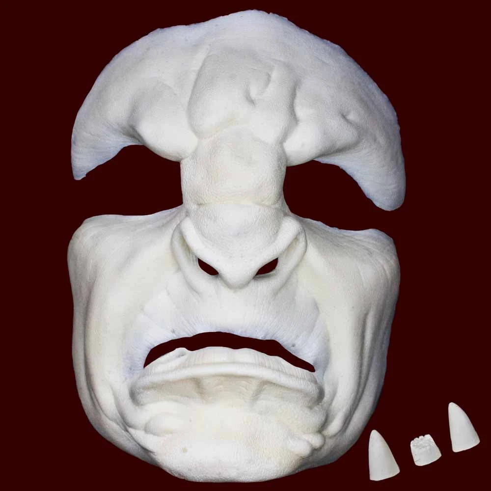 The Male Orc prosthetic mask is larger version of the female. It makes a great troll for those who do not have small faces. It includes a set of 3 tusks, two that come to a full point and one that was “broken” in battle.