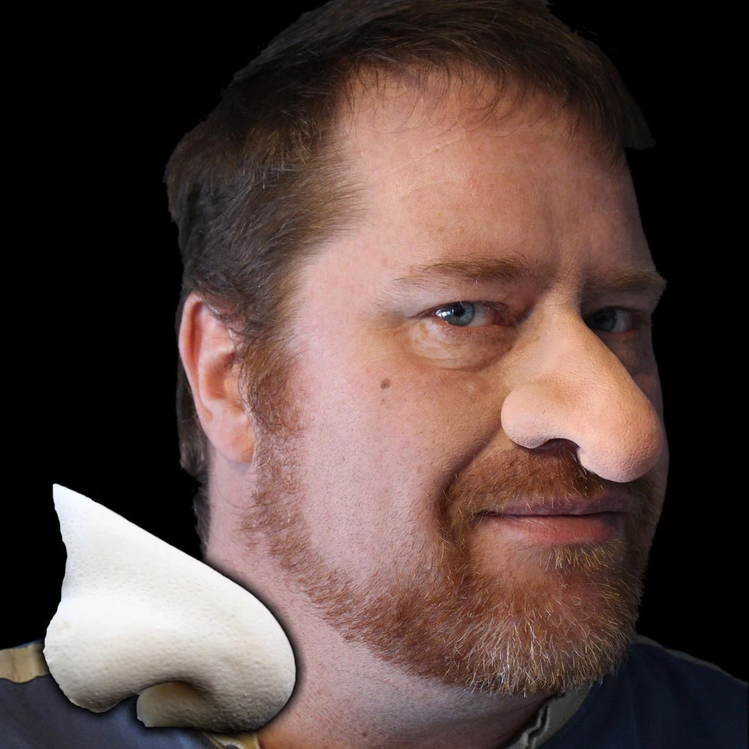 I would not call this nose skinny, but that is what it is called. It is not as wide as the Fat Wizard Nose. This bulbous nose works well for a wizard, troll or ogre costume. This costume nose stands out in all directions!
