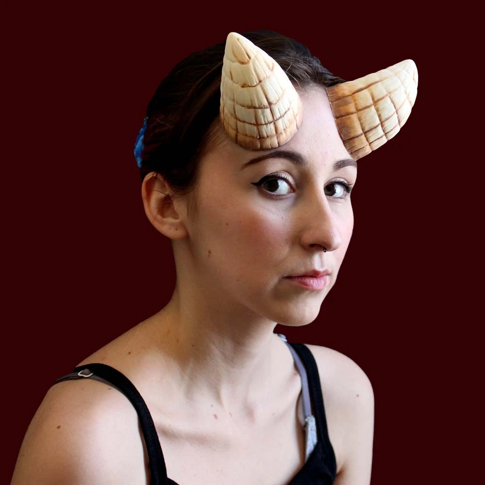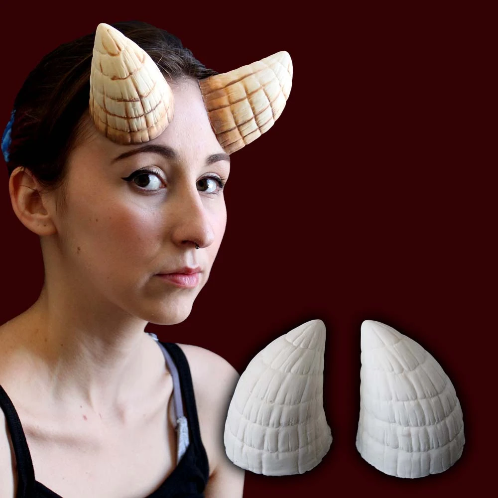 Huge horns. Very wide and stout, these will literally stand out in a big way. They are made of light weight solid foam latex so they are easy to apply and wear.