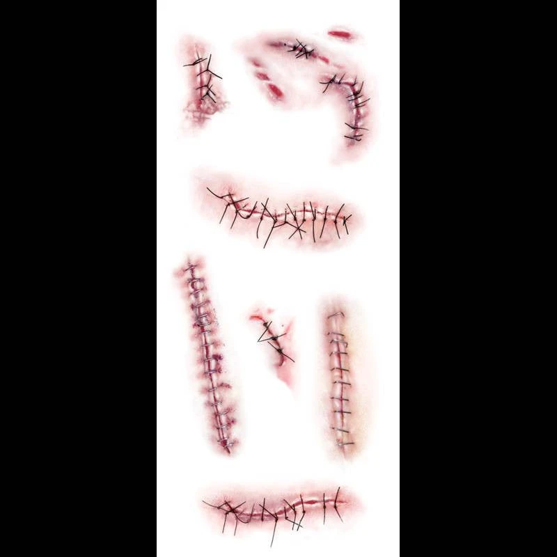 Thread stitch temporary tattoo injury sheet.