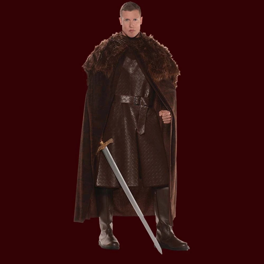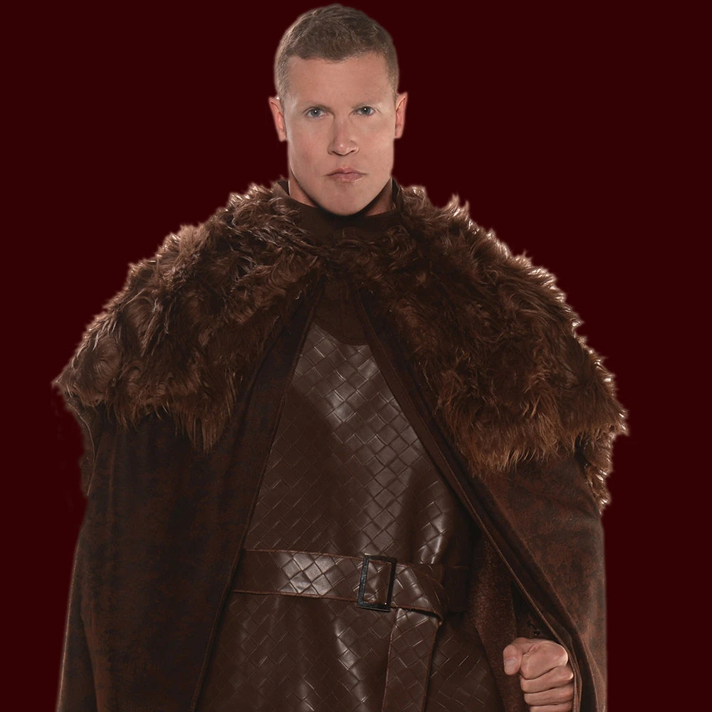 Brown cape with attached faux fur shawl and faux leather print