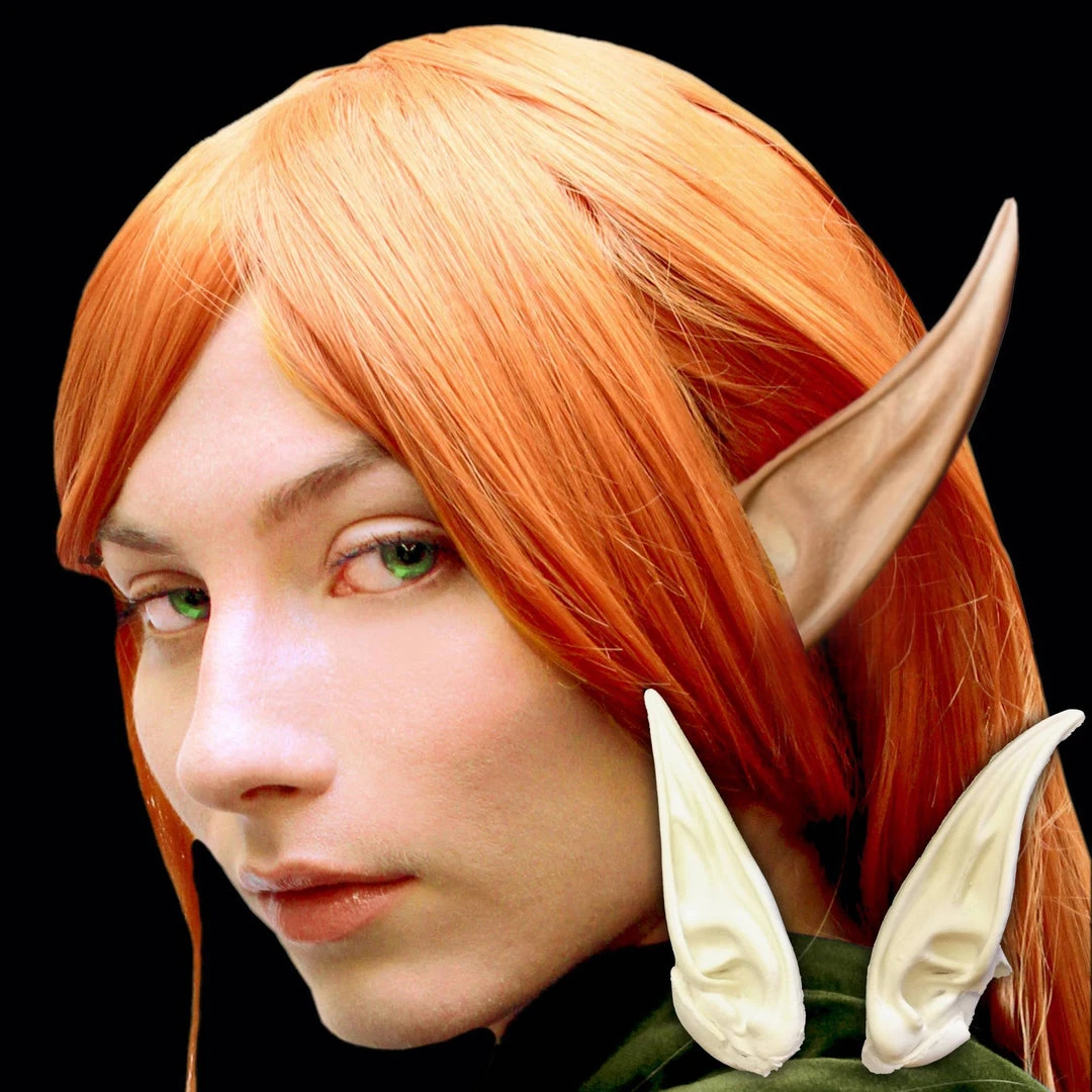 Pair of Elf Costume Ears measuring 6 inches from lobe to tip. Fits best over small ears. See size photo for reference. Use for an elf, pixie, fairy or other fantasy character. These pieces are made of light weight foam latex and are professionally designed by makeup artists to be adhered to your face just like Hollywood movie makeup.