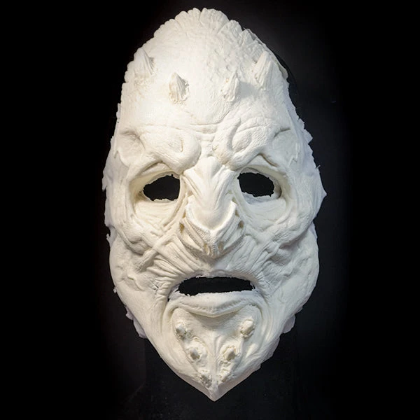 This has stone or bark textures in the brow and horns. It displays veins, musculature around the mouth and ends in a pointed chin. And, what about that nose? As a classic Tolkien Ent or a Treant from D&D, this is a mask that will make an impression.