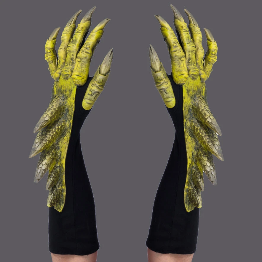 Green spiked dragon gloves with claws go perfect with your dragon or other reptilian costume. These gloves are comfortable enough to wear all night.Â