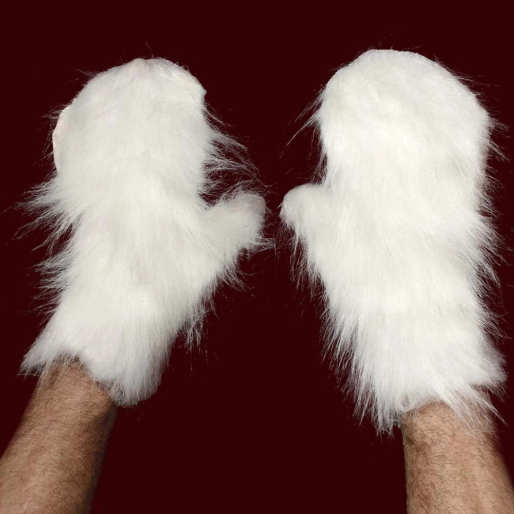 White Furry Bunny Paws, one size fits all. Made with a cotton/spandex glove and a faux White fur treatment for fluffy realism! !